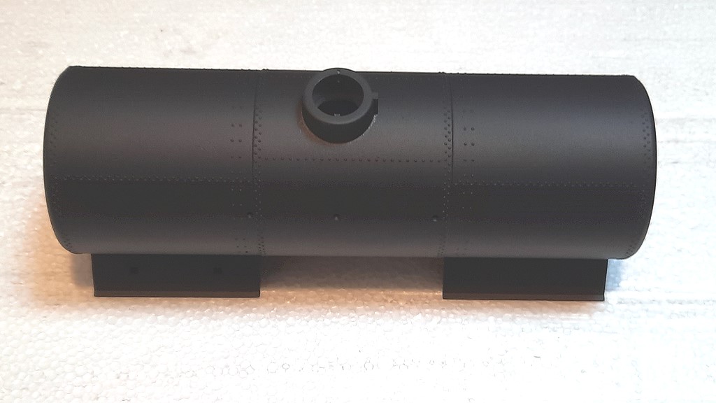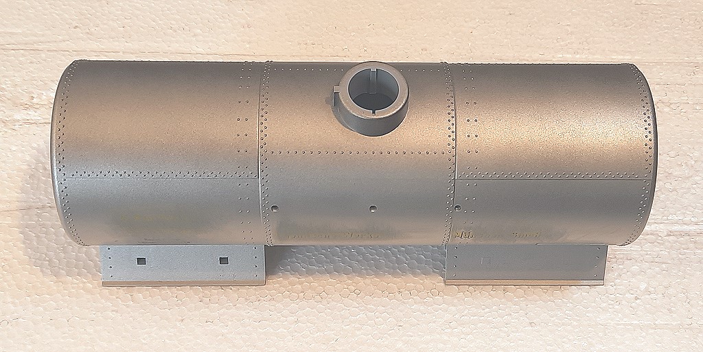 Zunächst mal wurde der Kessel abgeschraubt und von allen Anbauteilen befreit. Es war alles nur angeclipst und problemlos zu entfernen. Lediglich ein von unten in den Kessel eingedrückter Zapfen leistete etwas Widerstand. Danach noch die Nachbildung der Entleerungsstutzen, deren Clipse im Kessel verriegelten. Aber mit einem Schraubendreher konnte durch den Kessel von oben das Teil herausgehebelt werden.